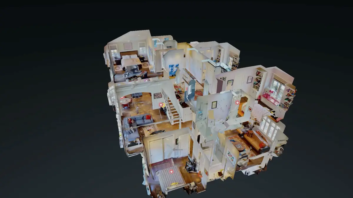 Immersive 3D walkthroughs with dollhouse view and shareable embed links.
